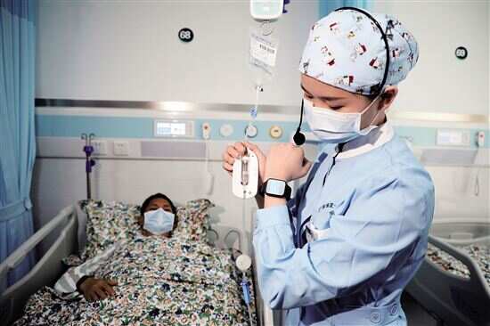 ■3月1日,全国首家全场景智能医院落户广东省第二人民医院。在5G智慧病房内,护士通过智能手环就可以远程监控住院患者的最新情况。新快报记者 孙毅/摄