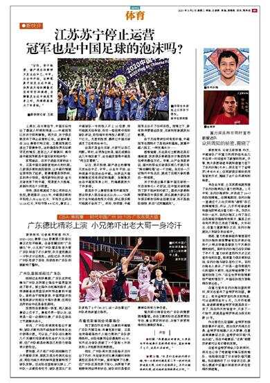 ●新快评 “以往,资不抵债、破产退出的事情只发生在中乙、中甲。从去年开始,这种现象开始发生在中超。如果说天海的解散还没有深切的痛感,当解散发生在中超冠军身上时,灼痛感就放大了许多倍。” ■新快报记者 王敌 上周五,在元宵佳节,中国足坛传出了最耸人听闻的消息——中超冠军江苏苏宁即将解散。两天后,苏宁俱乐部发布了停止运营的公告。这意味着,在2021赛季打响之前,卫冕冠军就已退出了联赛争夺。这的确是世界足坛都罕见的情况,甚至让人不禁疑问:莫非连中超冠军都是中国足球的泡沫吗? 客观地说,在苏宁进驻足球的这5年,正是中国足球极度泡沫化的时期。几家俱乐部的疯狂烧钱,让中超行情被全面哄抬了起来。联赛看着是很热闹,实则养分很低。借用新华社的话:金元足球攻势下的中超,观赏度大大提高,其副作用也十分明显。 很快,俱乐部就成了母公司的巨大负担。数据显示:2018年,中超俱乐部的平均收入为6.86亿元,平均支出则为11.26亿元,平均亏损4.4亿元。事实上,中超球队一年的投入不上10位数,很可能就无法保级,而对一些经常夺冠的球队来说,恐怕每年的净投入都要二三十亿元。无度的投资,最终让中国足球透支了应有的生命力。 这是不是金元足球,大家可以自己判断。同时,必须指出的是,国足成绩在这几年每况愈下,这也越发显得中超是“柯立芝繁荣”。 以往,资不抵债、破产退出的事情只发生在中乙、中甲。从去年开始,这种现象开始发生在中超。如果说天海的解散还没有深切的痛感,当解散发生在中超冠军身上时,灼痛感就放大了许多倍。 若是苏宁上赛季没拿到中超冠军,想必很多人现在会这么认为——“如果苏宁去年能战胜恒大夺冠,那么俱乐部可能就不会死了”。然而,很明显,中超冠军左右不了任何东西。疫情之下,原有秩序要被迫改变,足球的形象就弃如敝履。 由于无法带来任何有形价值,中超冠军也摆脱不了是泡沫的尴尬。就算中超八冠王,一样充满水分…… 理智地看,无论是壮士断腕还是忍痛割爱,放弃俱乐部都是苏宁集团甩掉包袱的最佳方式。毕竟,从产业角度来说,国内的职业足球俱乐部几乎就只有“赔本赚吆喝”这一个功能。当足协一刀切推行中性名后,就成了压倒大象的最后一根稻草。 苏宁的退出算不算中国足球的一次自我净化?不好说,但中国足球的确到了挤干泡沫的时候了。既然大家都标榜要做百年俱乐部,那么就请大家以百年俱乐部的目标去经营足球,而不是疯狂烧钱,然后“过把瘾就死”。