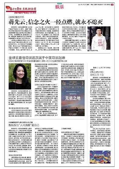 《无依之地》同时获2021年金球奖最佳影片,定档4月23日全国艺联专线上映 新快报讯 记者徐绍娜报道 由中影/华夏发行,中国导演赵婷执导、美国探照灯影片公司出品的《无依之地》昨日正式宣布,