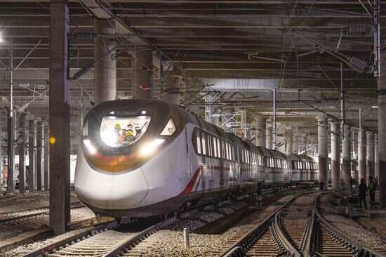 3日凌晨,广州地铁18号线时速160公里电客车在横番3号风井至番禺广场站段进行全线首次热滑试验,以对该线地铁供电、信号、通信、线路、机电等系统设备进行全面检测。新华社发