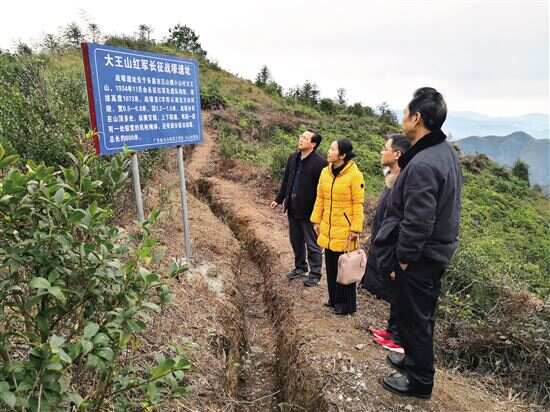 ■韶关市委党校赵校长一行察看红军长征大王山战壕遗址。 |