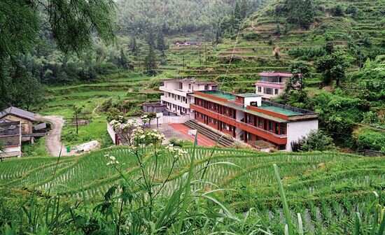 ■韶关乐昌市五山镇小山村,梯田里的校园。 |