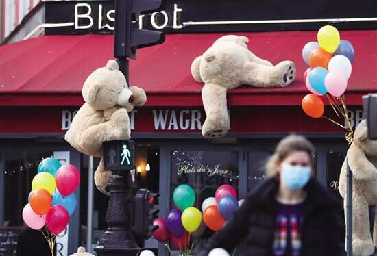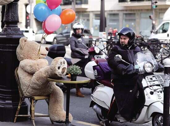 法国巴黎街头一家提供外带服务的餐馆近日被玩具熊“占领”,他们摸高爬低、四仰八叉“享受”阳光和美酒,引得路人驻足观看。受新冠肺炎疫情影响,法国餐馆、酒吧等场所自去年10月30日起一直关闭至今,不少餐馆推出外带服务。新华社发