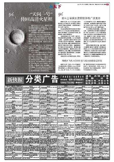 据新华社电 3月4日,国家航天局发布3幅由我国首次火星探测任务“天问一号”探测器拍摄的高清火星影像图,包括2幅全色图像和1幅彩色图像。 全色图像由高分辨率相机在距离火星表面约330千米至3