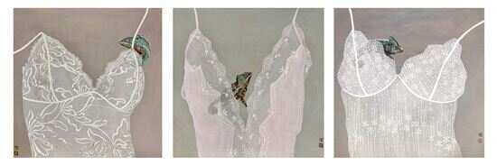 广州美术学院城市学院教师 作品是画家内心最直观的展现,画画作为我生活中的一部分,已成为我观看和体悟自己生活的独特方式。花开花落,云聚云散,在享受着创作的过程中,用直觉抒写着自己的心灵空间。 过年期间刚刚完成一组作品《生生不息》,“息”是取蜥蜴的“蜥”的谐音。关于女性,人们总会联想到生育,而作为女性而言,生育只是一个可以自由选择的选项,并不是必选,虽然作品的名称是“表达了人们美好的愿望”,但作品表达的是两种观念的冲突。 画面截取了穿着蕾丝内衣的女性的局部,内衣随着身体的扭动而呈现不同形态,这是女性在私密的空间内,才能自由展开的对于自己隐秘胴体的省视。这种省视,既包含女性意识的自我爱恋与抚慰,也具有对于现代社会生存焦虑的一种精神释放。 而作品中只有“物”的自我呈现,人物形象是隐形的。当然,这并不意味着人不存在。其实“物”的在场,以及“物”与“物”之间的关系,都携带着人的气息。“物”的命运寄寓着对一个女性的内心感受、生存经验乃至命运的书写。 我且称之为作为艺术家对女性生存经验的省视和反思吧。 ■收藏周刊记者 梁志钦 [南国艺坛姝丽]