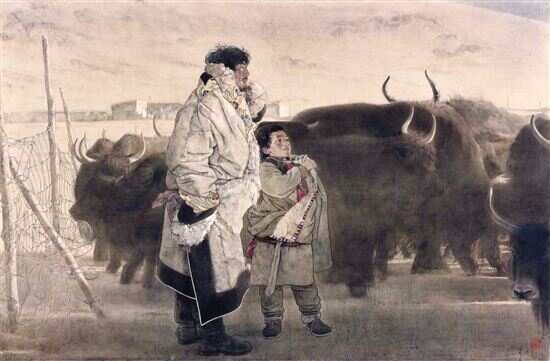 广州美术学院中国画学院副教授、研究生导师 作品构思了很久,五年前就着手做稿子,迟迟未动笔,内心总有点彷徨,拿起笔又怯生生放下。是心性的懒惰,还是害怕失败?——都有。 一、 草图 从初稿,到推敲。形象选择的时候有很多候选。直至正稿之后仍有调整,导致胶矾表面受到破坏而漏矾。修正很简单,就是在漏的地方补胶矾。 二、做纸 生纸做色。 在生纸上做底色有个好处,通体一个色。如果中途有修改,不需要修补底色。 这里用到了喷色法。各种色都有,需要倾向多的就多调一点。喷色的工具有很多选择,喷壶也能用,颗粒会稍微粗一点。我这里用的是可以折叠的喷嘴,小时候用它来喷乳胶固定铅笔素描。它的好处是颗粒粗细适中且不会堵。缺点是需要肺活量,这么大一张画做完之后会有点头晕。在之后的重彩步骤也用到它。 最后做出来的纸像是牛皮纸的颜色,那是基础色调。 三、过程 过程分墨色完成、淡彩完成、完成稿。 四、效果制作 技法不值得炫耀,很多即兴的想法和做法,害怕时间长了会忘记。记录一下,也可分享。 1.撞水撞墨:这个技法存在一定的偶然性,平放画面,让水沉积冲撞出花。撞完墨之后闭眼不管,干点别的,等干就可以考虑调整,不满意就直接洗掉。 2.局部抓皱:抓皱是很常见的技法,利用裂纹对纸张胶矾的破坏,使墨色渗透到纸张的深层。在这里我先把衣服的墨色染个大概,但留有余地,之后把作品从画板上拆下来制作,特别注意裂纹不能够伤及牦牛和其它的部分。 3.修改:中途我觉得画面需要多一点红色,于是我决定增加一条腰带。 有一种叫做“魔力擦”的神器,是纳米技术海绵,可以洗掉陈年的污渍和茶渍。一次突发奇想,用它来洗掉了绢上的笔误。画错了可以洗。神器所向披靡,是目前发现的洗得最干净的修改工具。用的时候需要非常小心,用力过猛的话宣纸或者绢都会被洗穿。洗完了记得补胶矾。 另一个问题就是遮挡,像这个腰带的部分是附加上去的,需要遮挡住无需洗掉的部分,边缘须整齐。这个遮挡用的美纹纸不能用国产的,会破坏纸张,或者有残留物。中国台湾和日本生产的黏度会比较合适。 4.贴箔:贴箔的时候也用了美纹纸,后来觉得其实作用不大,关键在于,金属箔只要边缘对齐,就会工整。 5.洒金:洒金亦须遮挡,这张遮挡纸是我用刀刻的蝉衣。 小结: 尝试运用最传统的渲染手段染出大片墨色,过程中放弃了牦牛的大量细节,希望通过大片墨色衬托出色彩的美丽。彩色面积很小,主要运用朱砂、朱膘和青金石并且配合金银箔做出效果。始终觉得,重彩让画面生辉,它是让人吃饱的“第四个馒头”,每张画到了重彩阶段就开始有了饱腹感。 最后再给自己打气:勇敢、不要懒惰。 ■收藏周刊记者 潘玮倩 [南国艺坛姝丽]
