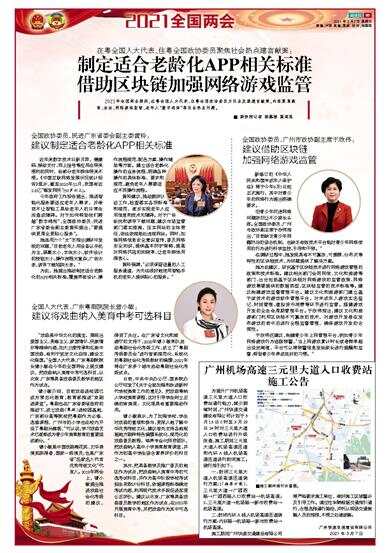在粤全国人大代表、住粤全国政协委员聚焦社会热点建言献策: 2021年全国两会期间,在粤全国人大代表、住粤全国政协委员为社会发展建言献策,内容聚焦教育、法治、网络游戏监管、老年人“数字鸿沟”