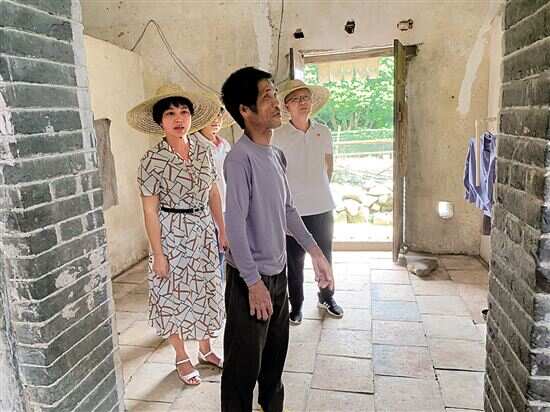 ■赖丽芬入户督查贫困户危房改造情况。 |