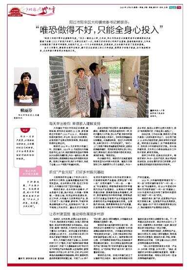阳江市阳东区大沟镇党委书记赖丽芬: “扶贫工作容不得半点虚假和马虎。”作为一镇的主心骨,几年来,阳江市阳东区大沟镇党委书记赖丽芬的足迹踏遍了全镇1103户贫困户的家门,与群众打成了一片。有