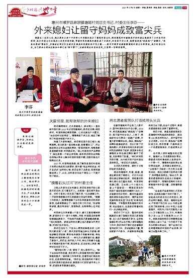 惠州市博罗县麻陂镇塘尾村党总支书记、村委主任李芬—— 抱着试一试的心态,她从原本乡亲口中的热心外来媳妇成为了塘尾村委主任;刚到塘尾村时破败泥泞的村道让她看到了乡村条件的艰苦,成为村委主任后