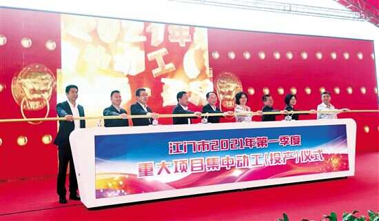 新快报讯 记者李红云 通讯员谢元春 周颖森报道 昨日上午,江门市举行2021年第一季度重大项目集中动工(投产)活动。 据统计,本次活动,江门全市共128个重大项目集中动工(投产),总投资728.4亿元。其中,按项目状态分,动工项目88个,投资额594.3亿元;投产项目40个,投资额134.1亿元。 按项目类别分,产业类项目95个,投资额336亿元,占一季度集中动工(投产)项目总投资的46.2%;城建类项目23个,投资额266.8亿元,占总投资的36.6%;交通类项目10个,投资额125.6亿元,占总投资的17.2%。