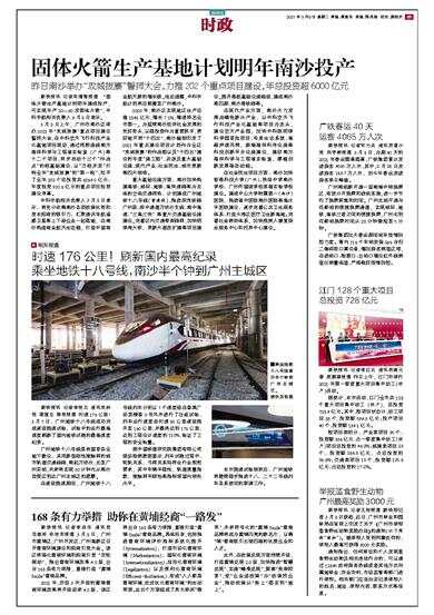 固体火箭生产基地计划明年南沙投产