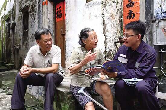 ■蔡华营(右)挨家挨户宣传用电常识。 |