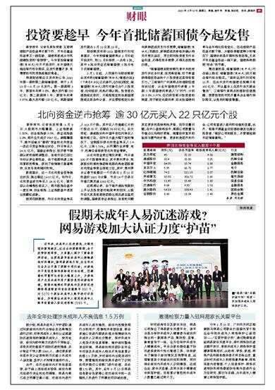特别报道 近年来,未成年人沉迷游戏、大额充值的新闻频发。在过去的寒假假期,由于疫情防控局势,大多数人减少了新春团拜活动,这更容易导致未成年人接触游戏时间增加。据网易游戏介绍,企业针对社会关