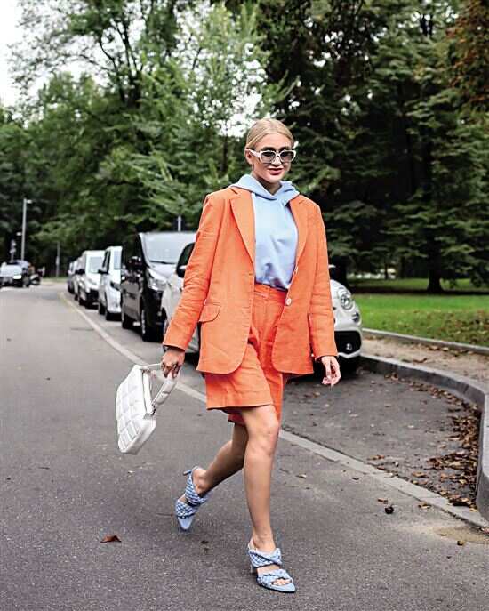 ▲短款西装与高腰下装搭配能提升腰线比例,拉长腿部线条。 |