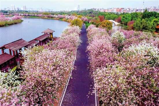 花城广州一年四季鲜花不断,而在春天万物生发的季节当中,生命所勃发出来的生机又是其它季节不能比拟的新鲜绝美,一树树怒放的花朵,一瓣瓣努力向外向上伸展开去的花瓣,有如无声倾诉的一曲生命礼赞歌谣…… 这就是花城独有的魅力,每每途经街头路边盛放的各种花树花海,都不由自主地慨叹“万物春勤早”的生命力量,那绿色新发的叶,那蓬勃吐蕊的花,生活中的美好,需要重新发现的眼睛,更需要细腻感受的心灵。 这一期,趁着如此花季,就用City Walk的方式,在花城来一场原地旅行的赏花寻花之旅。 ■新快报记者 陈斌/文 夏世焱 毕志毅 孙毅 李小萌/图(部分VCG图) 盛世美颜 宫粉紫荆梦幻出圈 赏花地 海珠湿地+海珠湖 坐 标 广州市海珠区新滘中路龙潭立交 看 点 宫粉紫荆、樱花、黄花风铃木等 3.2公里的紫荆花带、1.6万平方米的波斯菊、占地10亩的樱花林、随风逸动的黄花风铃木——说到春日羊城看花的好去处,海珠湿地及海珠湖这一片毫无悬念地“出圈”,无他,就三个字——太!美!了! 天气晴好的时候,蓝天白云花朵,微风拂面过,人在画中游,这就是位于海珠区东南部被称为“南肺”的海珠湿地景观带写照。 包括万亩果园、海珠湖和多条河涌在内的海珠湿地所在地,是典型的珠三角河涌湿地、城市内湖湿地和半自然果林镶嵌混交的复合湿地生态系统,也是龙眼、杨桃、黄皮、番石榴等岭南佳果的传统产区,这里是珠三角湿地千年果基农业文化的缩影,游走于此,一面沉醉在花海柔情的抚摸当中,一面领略岭南水乡文化的积淀,虫鸣鸟叫,水流潺潺,果林栈道,神心舒爽。 圈粉无数的梦幻大道,便是近日盛放的洋紫荆花,美到让人不能自已,美到令人崩溃…… 洋紫荆,也叫宫粉羊蹄甲、宫粉紫荆,广州城中的洋紫荆花有粉色的、粉紫色的,还有白色的,盛花期时只见满树花朵。 如果你仔细观察,盛放的洋紫荆花,正是以一己之躯充分地诠释出什么叫做“怒放的生命”,那肆意伸展的花瓣,似乎就是无声的花语,向上!再向上!生发!再生发! 海珠湿地这一片宫粉紫荆的梦幻大道,就位于湿地一二期的石榴岗河岸,繁花似锦,如花似梦,粉霞与夕阳争辉,花影与水天相望,心情漫随天外云卷云舒…… 除了宫粉紫荆,海珠湖南广场的樱花林也美得令人震撼,各种不同品种的樱花绽放出灿若云霞般的花朵。 对了,倘若逛累了,还可以到海珠湖公园里的沙河粉村体验馆来上一份干炒牛河,一边品尝着非物质文化遗产的美味,一边静观湖水飘摇、时光荏苒,如此游走,完美! 一藤成景 赴一场禾雀花之约 赏花地 华南植物园 坐 标 广州市天河区天源路1190号 看 点 禾雀花 一簇簇,一串串,远看如一只只串联在一起的顽皮趣萌的小麻雀——这就是爱花人都知道三月必约会的禾雀花。作为藤本植物的禾雀花,花季时简直是“一花分饰数角”的节奏,一藤成景,独木成林,在禾雀花这里都不是事儿,一个人就是一支队伍,一簇花就是一园春色,似一树鸟儿“叽叽喳喳”,无声胜有声,为无限春光添姿加彩。 要观赏禾雀花,华南植物园就可以满足你对这群“小胖鸟”们的追求。 华南植物园全称为中国科学院华南植物园,是中国历史最悠久的植物学研究机构之一,有“中国南方绿宝石”之美誉,哪怕不是花季看花,日常我也非常推荐没事儿去华南植物园走走逛逛,特别是如果每次能再提前认真做一下相关植物的功课的话,那必不虚此行,不要太涨知识,而寓教于乐,本就是旅游附带给人们的精神食粮。 禾雀花的花期不长,常规花期在20天到30天左右,一般不会超过30天,理论上盛花期约为3月中下旬,华南植物园的禾雀花盛花期大致是3月16日到22日这段时间,想要感受这胖胖萌萌的小鸟呢喃,您可要抓紧了。 禾雀花看起来像趣致可爱的小鸟,确实是造物主的巧夺天工之技,花的旗瓣是胸颈,翼瓣为双翅,龙骨瓣是尖翘的小尾巴,花萼如闪亮毛茸茸的小脑袋,花柄似鸟喙,盛花期串串挂枝头,密密簇拥如欲展翅,实令人赞叹不已。 华南植物园里的禾雀花花色也非常多,白色、粉红色、紫白相间色还有深紫色,不同的花色不同的美,不同的色彩又带给人不同的观感,虽然都好像一簇簇小胖鸟一般,但要知道,从心理学的角度上认知,色彩对人的情绪影响是不一样的,有积极的,也有消极的,有的色彩让人清醒,有的则使人被催眠,有的能增进食欲,有的则让人易怒…… 好比外出游山玩水,天气好的时候阳光灿烂蓝天白云,心情也同样会跟着舒爽;倘若赶上阴天下雨,阴暗无光的感觉就容易让人扫兴——这都是色彩对人情绪的支配影响,而多了解一些事物背后潜在的深层原因,对调整自我情绪也是某种程度上的帮助,掌控情绪,尤其是外出游玩时不受情绪的影响,也是能让你及同伴玩好的先决条件之一。 如果要去华南植物园约会禾雀花,在蕨类/阴生植物区的那棵近百年树龄的禾雀花,必须去会一会,“独木成林一藤成景”的盛况在它这里蔚为壮观。 常探常新 白云深处有花开 赏花地 白云山风景区 坐 标 广州市白云区同和街道广园中路801号 看 点 毛杜鹃、油菜花、玉堂春、洋紫荆 如果用一句话概括广州最鲜明的旅游看点,那么非“一山一水一祠堂”这句话莫属了,其中“一山”就是国家5A级和国家重点风景名胜区白云山风景区,这一片占地28平方公里的景区如一枚常探常新的“宝藏”,让人可以随时开启探访之旅。 白云山风景区分成七大游览区,如果真