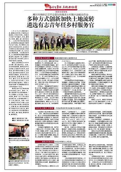 多种方式创新加快土地流转 遴选有志青年任乡村服务官