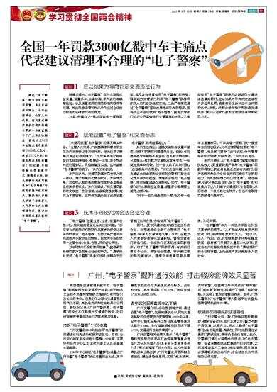 提起“电子警察”,即自动电子抓拍装置,车主应该都不陌生。今年全国两会,全国人大代表、重庆索通律师事务所律师韩德云带来一份建议戳中了广大车主的痛点:据统计,2020年全国交通罚款总额3000亿元左右,截至2020年末,全国民用汽车保有量约2.81亿辆,平均每辆车罚款逾千元,韩德云认为,如此规模的交通罚款或和“电子警察”不规范设置和使用有关。新快报记者就此采访了法律界人大代表和公共治理领域专家,探讨如何规范设置及使用“电子警察”。 建议1 应以结果为导向判定交通违法行为 韩德云提出,“电子警察”在什么路段应该设置、设置多少、由谁核准、多久进行准确度检验,以及设置使用的规范标准和程序等问题,相关行政主管机构从未作出过立法效力较高的法律或行政法规定。 对此,他建议,一是从国家统一管理层面,规范各地设置使用“电子警察”的标准,限制地方交管部门利用“电子警察”获得罚款收入的行政执法权空间。二是严格规范通过“电子警察”查处违章违法行为的程序,坚决防止不合法使用“电子警察”,提高交管部门公正公开高效进行交通管理的水平。三是在使用“电子警察”获得的证据进行交通违法违章处罚时,应以结果为导向判定违法行为并适用处罚,提高接受投诉纠正不当判罚的比例,方便人民群众参与维护和改进交通秩序,减少以追求罚款为主的执法导向和处罚方式。 建议2 规范设置“电子警察”和交通标志 “未规范设置‘电子警察’的情况确实存在。”全国人大代表、广东国鼎律师事务所主任朱列玉接受记者采访时称,他关注到了韩德云提出的有关建议。“比如某高速公路路段的实线划得很长,有将近一公里,车子想进附近的服务区,只能被逼压实线,这时就被“电子警察”拍到了。”朱列玉举例说。 朱列玉认为,交通罚款属于罚没收入的一部分,属于税制外的费用收入。实际情况是,“这些收入有的是由地级市政府甚至是县政府来负责收支,”朱列玉建议,“把交通罚款的收支权统一收回省里,由省级财政统筹,地方上不要留钱,这样地方就失去了违规设置‘电子警察’的利益驱动力。” 朱列玉也指出,道路交通标志设置不规范、交规不明确的问题值得关注。例如,有的道路要求车辆既不能直行,也不能左转右转,只能掉头;有的地方交通标志变来变去,一会规定是单向行驶,过一会又成了双向行驶。“这些都是不合理的。”针对这些问题,朱列玉建议由交通部和公安部的交管部门联合在全国开展执法检查,清理不合理的“电子警察”,规范设置道路交通标志。同时,“电子警察”在什么路段应该设置、设置多少都需要立规范,定标准。 “对于一些交通违规的个案,比如有一些车主重复被罚,可以由省一级部门统一接受车主的信访投诉。对不正常罚款较多的‘电子警察’,有关部门要专门进行研究,分析看看存在什么问题,如何改进。”朱列玉补充说。 朱列玉表示,让“电子警察”发挥应有的执法效力,更重要的是严禁将“电子警察”罚款所得按比例或者全额返还给有关部门,因为这样无形之中会给有关部门提供了创收的动力,“他们就会想办法让你违章”。他还强调,罚款不是执法目的,设立“电子警察”的初衷是为了让人们遵守交通规则,安全驾驶,从而形成一个良好的社会秩序,但也不能取消罚款或者干脆不罚。 建议3 技术手段使用需合法合规合理 “‘电子警察’设置过密、过多,设置不合理、不人性化确实是全社会关注的问题。”浙江省公共政策研究院研究员夏学民接受记者采访时表示,“电子警察”实质上是交警运用先进技术手段执法的体现,而技术手段的使用一定要合法、合规、合理,并保证公平性。 “如果技术手段的使用跑偏了,就容易引起被罚款方甚至是全社会的争议。”夏学民补充说,“电子警察”本身无对错,关键在于交管部门如何合理、合法使用“电子警察”。 同时,夏学民建议政府部门应当形成合力,治理违规设立或不合理使用“电子警察”带来的交通管理乱象。比如,各地方人大常委会要强化监督职能,督促交管部门依法行政,依法执行正常的违章罚款程序。对于“电子警察”罚款所得,有关部门要给予公示,消除社会疑虑。审计部门要加强内部审计,理清交通违章罚款从哪来,又花向哪。 “电子警察”作为一种技术手段也引发了夏学民的思考。“人不能成为信息技术的奴隶,我们要做信息技术的主人。”他认为,迈入“十四五”后,社会信息数字化特征越发明显,政府部门开展了大量数字化改革,更应当加大对智能信息系统中的“算法规则”的合法性审查,让先进技术更好地服务人类社会。 相关 广州:“电子警察”提升通行效能 打击假牌套牌效果显著 我国道路交通管理系统中的“电子警察”是随着科技的发展而产生的,由于相关立法的不完善和管理缺乏精细化,有时会引发公众的争议。但是它作为城市交通管理的现代化手段,其执法方式和社会效果十分明显。新快报记者从广州交警获悉,“电子警察”的设立不仅能提升交通通行效能,对打击假套牌等重点违法行为效果更为显著。 市区“电子警察”1100余套 广州交警自2000年起启用“电子警察”对交通违法行为进行拍摄取证执法,目前,全市中心城区共设有电子警察1100余套,主要分布在市中心区的主次干道上以及各高速公路路段。 2020年中心城区“