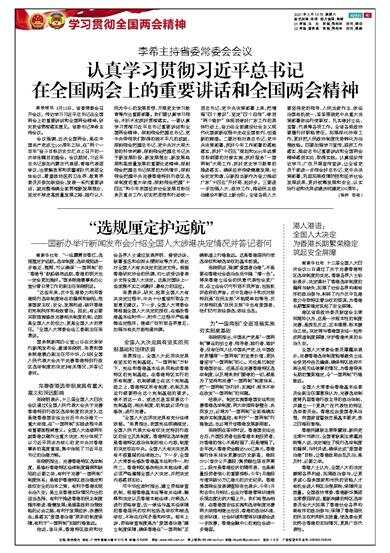 ——国新办举行新闻发布会介绍全国人大涉港决定情况并答记者问 据新华社电 “一法霹雳安香江,选规厘定护远航。选举制度、选举规矩进一步修正、理顺,可以确保‘一国两制’的‘香港号’航船破浪远航,