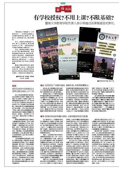 暨南大学教育学院负责人表示将通过法律渠道追究责任, 同时提醒考生一切信息以官方渠道发布为准 “院校直招,不限基础”“1.5年拿毕业证”……你是否也有被线上这些铺天盖地的成人教育广告“骚扰”