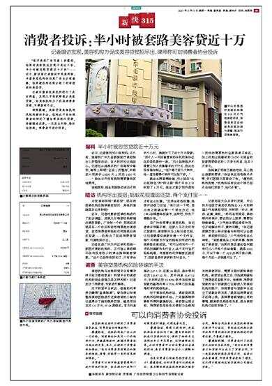 记者暗访发现,美容机构为促成美容贷损招尽出,律师称可向消费者协会投诉 “医疗美容广告写着1折整容,结果到美容院后发现不是这个价,半小时被忽悠贷款近十万块”……近日,新快报记者接到市民报料称