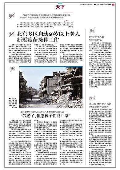 叙利亚危机十周年,从壮年迈入老年的叙利亚老人说—— 据新华社电 3月中旬,在叙利亚中部城市霍姆斯,战争留下的废墟残破如昨,萧索中看不到一丝早春的迹象。65岁的哈迪·古松站在自家被炸毁的房屋