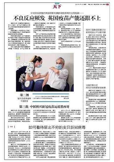 计划供给欧盟的英国阿斯利康新冠疫苗再次出现短缺—— 据新华社电 英国阿斯利康制药公司13日宣布,由于生产问题和出口限制,计划供给欧洲联盟的新冠疫苗再次出现短缺。 阿斯利康在一份声明中
