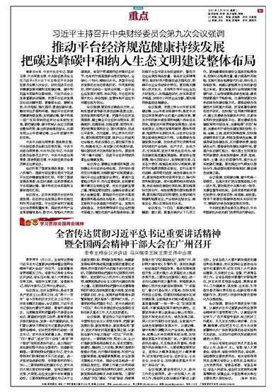 推动平台经济规范健康持续发展 把碳达峰碳中和纳入生态文明建设整体布局