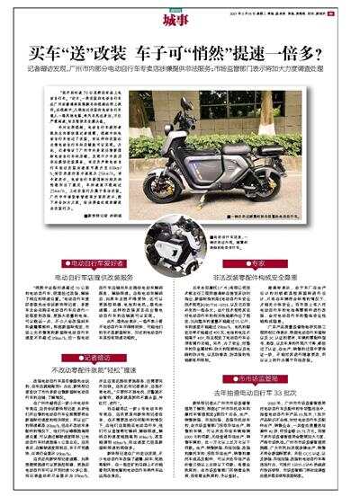 记者暗访发现,广州市内部分电动自行车专卖店涉嫌提供非法服务;市场监管部门表示将加大力度调查处理 “我开到时速70公里都没有追上电动自行车。”近日,一段改装的电动自行车在广州东濠涌高架路飙车