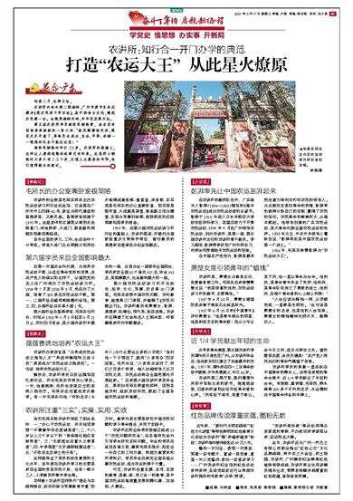 农讲所:知行合一开门办学的典范 革命广东 初春二月,红棉正红。 农讲所内有木棉二株雄峙,广州市原市长朱光题诗《观农民讲习所旧址》:宏开讲舍古无伦,崛起农民第一功。合抱英雄树双峙