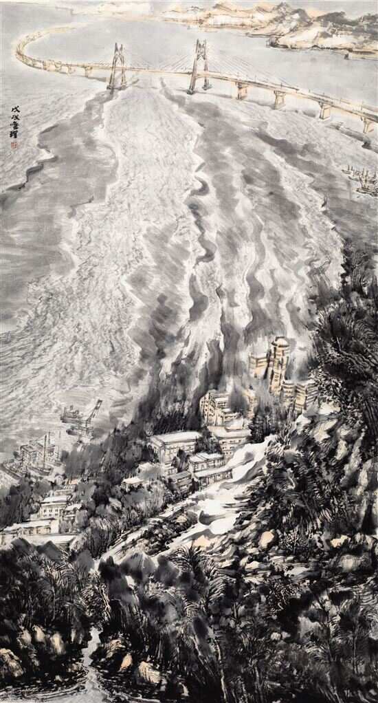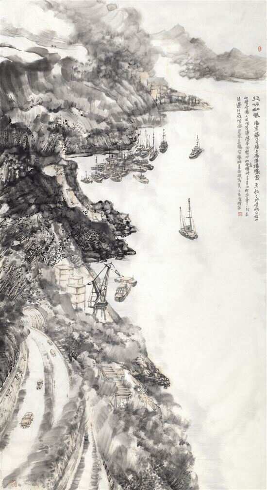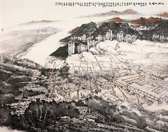 近年,广东画院专业画家黄唯理以海岸线和沿海特区建设为题材,创作了一大批建设题材的新山水画。他说:“探索新建设元素与传统山水融合,表达山水新景观的中国画。” “明月装饰了你的窗子,你装饰了别人的梦。”诗人卞之琳曾诗意地描绘了自然与物、人与人之间的微妙关系,而这一种诗意的表达,近日也被视觉化甚至戏剧化地出现在了广东画院新址展厅中。那一天,正在展出的“广东画院优秀作品展”迎来了两批“特殊观众”,他们看着《火神山曙色》《潮声》(港珠澳大桥建设题材)等作品,或是感慨,或是惊叹,因为,他们既是中建三局集团有限公司-武汉火神山医院的建设者、中交隧道工程局-港珠澳大桥等重大工程的建设者,又是“画中人”。 ■收藏周刊记者 梁志钦 用传统山水 记录时代建设的大局面 约二十年前,黄唯理便已注意到广东作为沿海地区的特殊地貌,并以沿海人文风貌作为创作对象进行创作,并提出了“沿海新山水”的概念,他认为,古代山水画家多集中在中原地区,极少关注到海边生态,因此,沿海风光成为了山水题材探索的新课题。2017年,黄唯理在广州艺术博物院举办了以“山海经”为名的个展,作品呈现出富于现代性意味的建构视野。近年他以海岸线和沿海特区建设为题材,创作了一大批建设题材的新山水画。黄唯理说:“探索新建设元素与传统山水融合,表达山水新景观的中国画。” 在《合龙前夕》《大湾晨曦》《潮声》等作品中,黄唯理营造出一种新的沿海山水新景观,他保留了北宋郭熙所强调的“三远”追求,画面呈现出视觉开阔、气势磅礴的景观,但由于传统山水的山、石、树等符号构成的稳定结构,在沿海新山水的题材中被解构,注入了现代化的机械以及跨海大桥等建筑,在固有的符号与新时代的符号相融合方面,黄唯理进行了长时间的探索与实验,建构起了属于个人的沿海山水意境。 通过这几幅作品,读者可以感受到沿海工程复杂的现代化机械、百舸往来繁忙的场景以及海边礁石与岭南丘陵的地貌,在黄唯理笔下,得到了艺术化的概况处理,并进行了符号化的提炼,突破了传统山水反映时代建设的局限。 “画面也同样感动着我们” 2020年1月23日,中建三局迅速组建了武汉火神山医院建设团队,从空无人烟的荒地到一座占地34000平方米、拥有1000个床位的抗疫医院,建设团队从方案设计到建成交付仅用10个昼夜,被誉为“中国速度”,为中国抗疫胜利迎来第一道曙光。正是这种气势,以及付诸行动的力量,感动了画家黄唯理,在一年前,艺术家们都在思考如何表达抗疫题材时,他就对火神山医院的建设速度与成效,久久不能忘怀,反复思索从何入手。 “通过看各类媒体报道和工地直播报道我的心与火神山医院建设者已融为一体,自己恍如置身于现场。在热泪、热血的驱动下伴着媒体直播平台边观看边想边画(也结合自己曾经到过武汉长江沿岸的采风的地域感受)度过一个个不眠之夜。渐渐地心中也构筑起火神山医院建设工地的大画境。”黄唯理回忆当时的思考过程。 日前,中建三局集团的部分员工在广东画院新址展厅参观了抗疫题材中国画《火神山曙色》,并与画家黄唯理相遇后百感交集,他们不禁回想起了疫情初期在建设工地那段难忘的日子。中建三局集团华南有限公司项目经理曾江说:“作品使我们回到了当时争分夺秒的抢建场面,宏大的场景反映了中国建筑的气度。在国家最困难的时候我们做到了敢于担当并挺身而出!” 中建三局项目部书记罗浩伟深情地说:“大气磅礴而描绘生动的画面也同样感动着我们。” 对此,黄唯理深有感触,“作品能够与观众的心灵形成碰撞和感情共鸣是对作者最好的奖赏。” 与时代同步伐,与人民共呼吸 在参与港珠澳大桥题材的中国画《合龙前夕》《潮声》,高铁题材的中国画《远声》,岛嶕建设题材的中国画《潮现一岛水中央》,隧道题材的中国画《彼岸和风》等作品的现场,建设者们与黄唯理交流了他们的观感,并介绍了中交集团在设计和承建诸多国内及世界水工、桥梁建设史上的“第一”“之最”等多项极具影响力的工程建设经历,为画家在建设题材方面的创作,提供了鲜活的启迪。 翻看近现代美术史可知,岭南名家们多有反映时代建设的名作诞生,例如黎雄才先生的《武汉防汛图》,关山月先生则不但有《山村跃进图》等反映大建设的作品,还有《绿色长城》《游龙出海》等反映时代进步的作品。 广东画院院长林蓝向建设者回忆起广东画院先辈们的传统,她介绍:“我院的前辈名家关山月、王玉珏、汤小铭、林墉等一大批老师,一直秉持‘与时代同步伐,与人民共呼吸’的理念,创作了大量的现实题材精品力作。”林蓝向建设者讲述疫情以来画家们以画笔投身抗疫的事例,她说:“通过投身抗疫及当今的建设,我们能够看到每一位建设者的辛勤付出。我们的美好生活因建设者的负重前行而换来,我们愿意为他们而讴歌。”