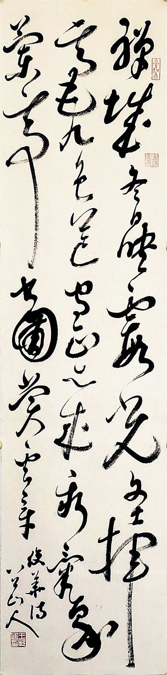 ■王世国狂草《观“正大气象”书法展》 释文:禅城冬日映霞光,文士挥毫九色芒。守正亦成新气象,兰亭书圃赏云章。 |