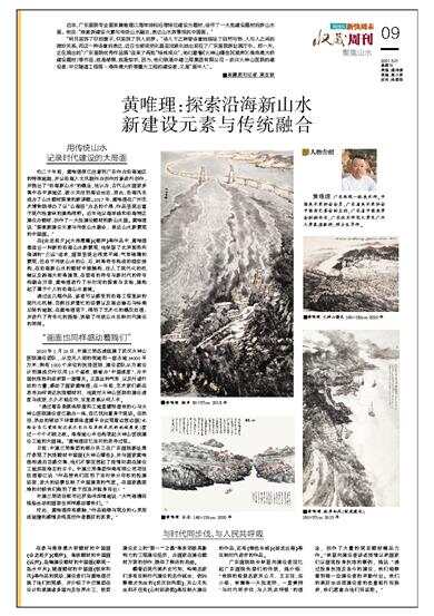 近年,广东画院专业画家黄唯理以海岸线和沿海特区建设为题材,创作了一大批建设题材的新山水画。他说:“探索新建设元素与传统山水融合,表达山水新景观的中国画。” “明月装饰了你的窗子,你装饰