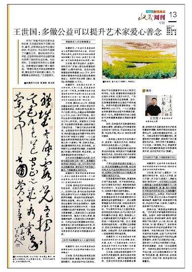 作为广东省书法评论家协会的主席,王世国近些年不仅潜心创作、著书,还带领协会在书法理论研究、书法评论、书法创作方面做了大量的工作,理论和创作齐头并进,这些研究和创作在全国范围内获得了良好的社会反响