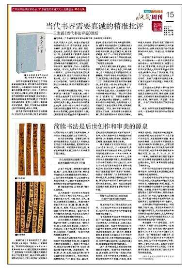 ——王世国《当代书法评鉴》读后 ■方孝坤 (广东省书法评论家协会副主席、华南师范大学教授) 当代书法的高度首先归之于书法教育体系的建构,其次是书法研究的拓展和深入。如果将当代书法研究