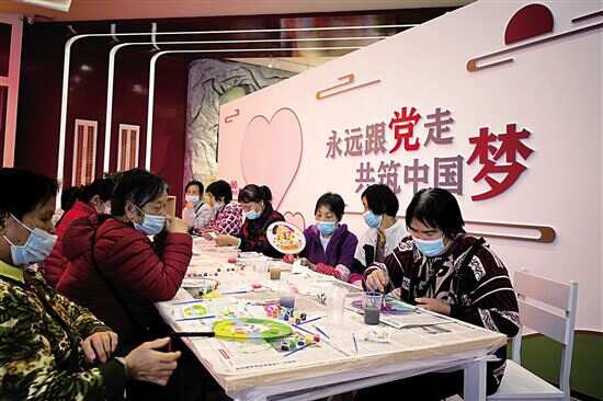 ■党群服务中心开放后,村民可以在这里学习画扇子和插花。新快报记者 李应华/摄 |