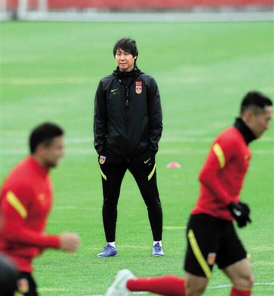 ■3月21日,国足主教练李铁(中)在训练中。 |
