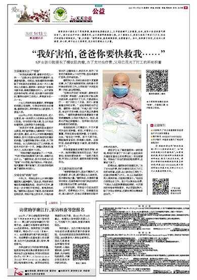 8岁女孩口腔里长了横纹肌肉瘤,为了支付治疗费,父母已花光了打工的所有积蓄 潘雨辰的口腔长出了恶性肿瘤,她害怕地瑟缩在床上,几乎夜夜睡不上安稳觉,后来,连张口说话的勇气都没有了。孩子在治疗中