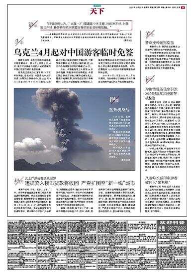 头条 据新华社电 乌克兰总统泽连斯基日前签署命令,自4月1日至9月30日,乌方对以旅游为目的入境或过境的中国公民实行临时免签政策。 据乌克兰总统办公室官网23日发布的消息,总统令说,