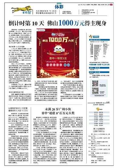 新快报讯 记者陆妍思 通讯员朱礼球报道 1月30日,佛山中出大乐透第21013期基本投注一等奖1000万元,这是佛山体彩1月份中出的第4个千万元以上大奖,然而该中奖者却一直不现身。3月22日,距