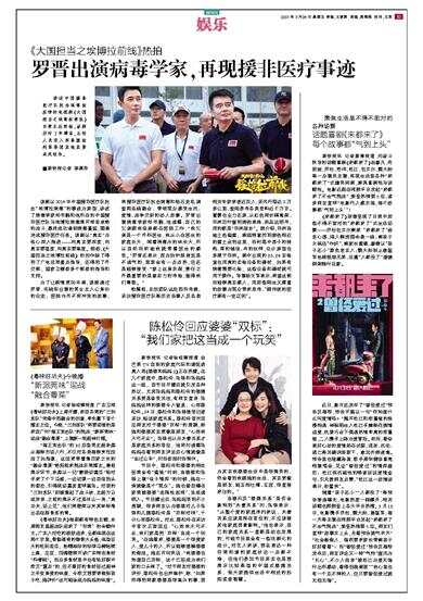 《大国担当之埃博拉前线》热拍 讲述中国援非医疗队抗击埃博拉疫情的电视剧《大国担当之埃博拉前线》目前正在热拍,该剧历时3年筹备,主创人员深入西非塞拉利昂等国实地实景采风创作。 ■新快报记者 梁燕芬 该剧以2014年中国援非医疗队抗击“埃博拉病毒”的事迹为原型,讲述了病毒学家郑书鹏和他所在的中国援非医疗队与埃博拉病毒展开艰苦卓绝的战斗,最终成功遏制病毒蔓延,圆满完成援非医疗任务。该剧以“真实”为核心深入推进——向真实要深度,向真实要温度,向真实要高度。据悉,《大国担当之埃博拉前线》的创作除了得到了广电总局重点指导,还得到了外交部、国家卫健委多个部委的指导和支持。 为了让剧情更加丰满,该剧通过罗晋、毛晓彤出演的男女主人公身份的设定,医院内外不同冲突的故事,将援非医疗队抗击病毒和钻石走私调查两条线融合,带领观众感受生死、爱情、战争交织的动人故事。罗晋出演病毒学家郑书鹏,他透露,自己的父亲跟我母亲都在医院工作:“我父亲是一个外科医生,我从小在医生的家庭长大,闻着消毒水的味长大,所以自然而然地我就带着医生的感受。”罗晋还表示,因为防护服肯定是不透气的,里面会有一点点热,但还是能够接受:“穿上这身衣服,责任之外最重要的是意志力的考验,值得我们尊敬。” 拍摄前,主创团队远赴西非考察,采访援非医疗队等历史当事人及各类相关专家学者近百人,采风行程达2万多公里,查阅参考各类资料近千万字。置景也全力还原,从红色网状隔离架、非洲百叶窗到病例表格、药品说明书,用的都是“非洲版本”。据介绍,非洲当地土色偏黄,剧组特意找到颜色相近的黄土运到这里,而村落中房子的结构、草的铺法、布的纹样,设计原型也多源于非洲。剧中出现的P3、P4实验室也用真的实验设备和器材,如果有病毒需要化验,这些设备和器材就可用于操作。导演杨文军表示,希望这部戏能够真实感人,用那些陌生又厚重的故事为观众带来思考,“跟传统的医疗剧有一定区别”。