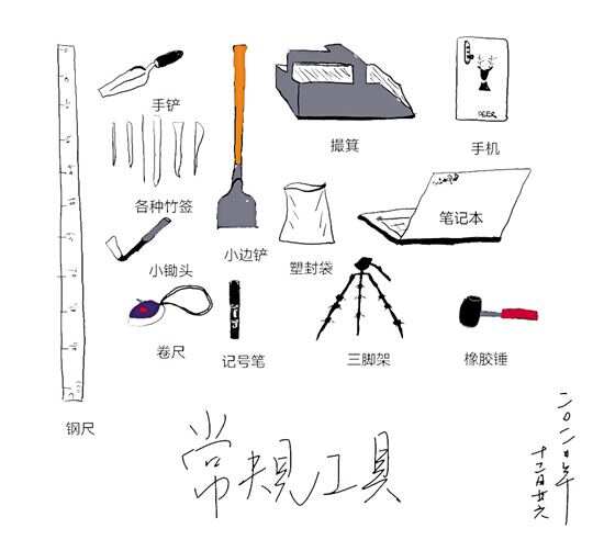 ■许丹阳手绘考古挖掘常规工具 |