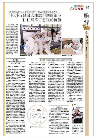 95后考古新兵、三星堆“祭祀坑”一线工作者讲述发掘历程: ■收藏周刊记者 梁志钦 对于不少新一代考古工作者来说,毕业于北京大学考古文博学院的许丹阳算是比较幸运的,作为一名95后,在五