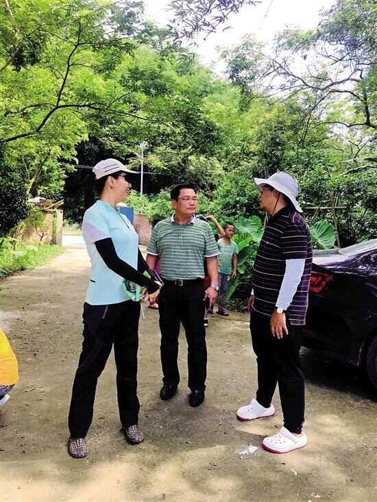 ■杜求卿(中)在菲牛蛭养殖孵化基地与游客畅谈。 |