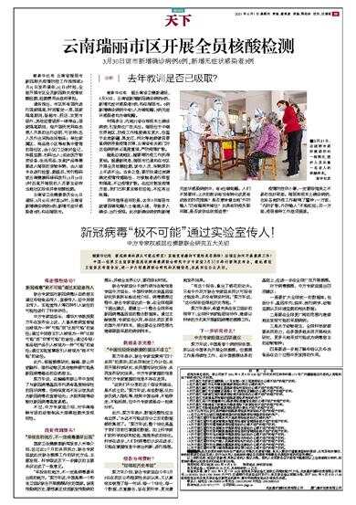3月30日该市新增确诊病例6例,新增无症状感染者3例 据新华社电 云南省瑞丽市新冠肺炎疫情防控工作指挥部3月31日发布通告,31日8时起,全面开展市区全员新冠肺炎疫情核酸检测,检测费用由政