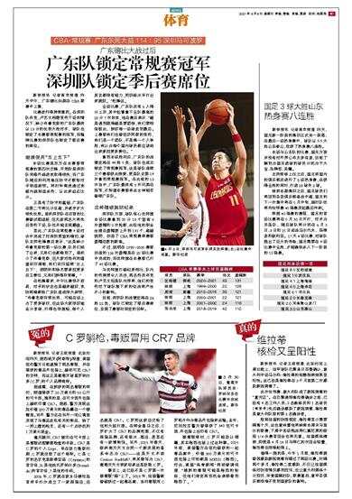 广东队锁定常规赛冠军 深圳队锁定季后赛席位