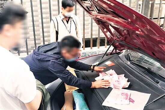 ■警方在团伙主要成员陈某车辆中查获大量现金。 通讯员供图 |