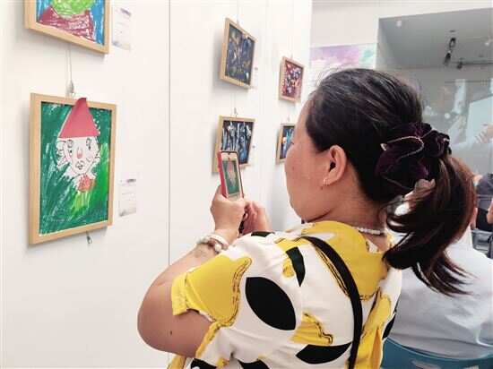 “小典画的《绿林中的圣诞老人》被选中参加这次画展,我们都觉得非常开心,小典也想亲眼看一看!”4月2日下午3点,金女士带着儿子小典准时赶到广东南岸至尚美术馆2楼展厅,安排好儿子坐定休息,她迫不及待在满墙的作品中找到了儿子的画作,拍照留念。“第一次参加这样大型的展览,对于小典而言,是莫大的荣耀,希望他能用画笔讲述内心,和外界多一些沟通、交流。”金女士笑着说。 据介绍,本次少儿艺术共融公益站集中展示的儿童艺术画作合计约140幅,目的是以艺术方式唤起社会对乡村振兴中的农村留守儿童、城市自闭症儿童、白血病等特需儿童的持续关注,以实际行动共建美好生活。本次活动为广州市天河区新快社会工作服务中心“一星一世界”画展的活动内容之一,该公益项目联合主办方广州市社会服务发展促进会、广东省许钦松艺术基金会、广州市荔湾区恒福社会工作服务社等机构不仅在4月2日世界自闭症关注日当天举办融合画展开幕式,还在活动现场举办公益沙龙,探索后疫情时代的特需儿童服务网络的建立和健全,公益导演蒋能杰还携其公益影片《一切都会有的》的精彩片段,亲临现场与参展者观影及对话。 ■本版统筹:新快报记者 潘芝珍 本版采写:新快报记者 严蓉 通讯员 黄蕴潞 图片由受访者提供