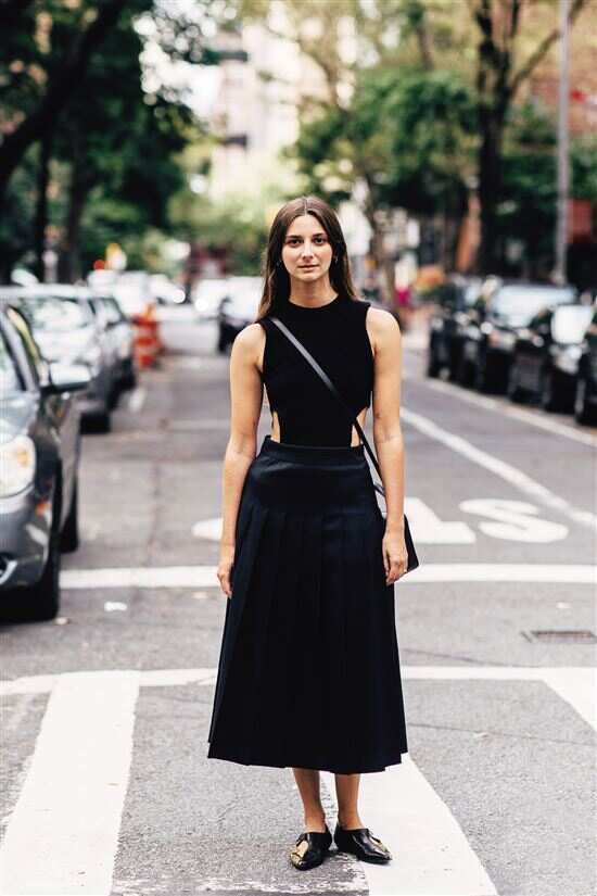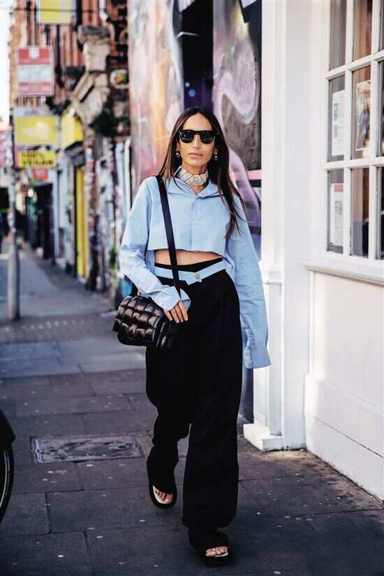 ▲大一点的挖洞上衣做内搭,加西装或风衣都是不错的选择,能冲淡此类单品的性感味道,还可以在里面叠穿斜肩背心,形成错位感,丰富穿搭层次。 |