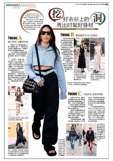 ■新快报记者 梁彧/文(资料图片) 最近逛社交平台时不难发现,不少时尚博主们都穿上了挖洞设计的单品。 洞洞元素2020年时已频繁出镜,今年春夏不少品牌则都相继推出挖洞设计的成衣,款式
